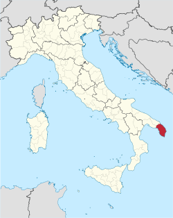 The Province of Lecce is a province in the Apulia region of Italy. Its capital is the city of Lecce. Totally included in the Salento peninsula, it is the second most populous province in Apulia and the twenty-first most populous in Italy.